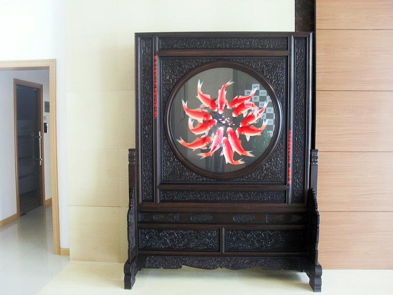 由江陰市臨港新城黨工委、管委會訂購的大型落地屏風十二紅魚已于2012年7月2日送達指定地點