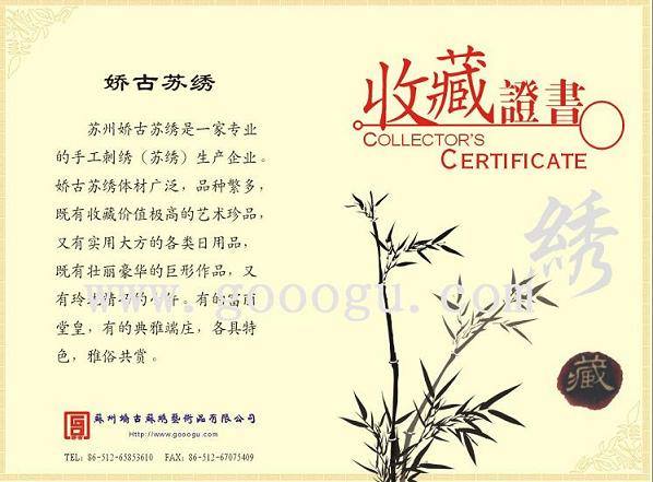 蘇州嬌古蘇繡坐落于蘇州吳中地區(qū),所有產(chǎn)品都是純手工制作,公司集研發(fā)、制作、銷售與一體,在嬌古設(shè)有大型的蘇繡展廳,將行業(yè)內(nèi)高檔的精品蘇繡展現(xiàn)在蘇繡愛好者的面前。今年也是蘇州嬌古蘇繡感到榮幸的一年,今年是中華人民共和國成立64周年,嬌古蘇繡應(yīng)美國孫中山思想研究會(huì)會(huì)長肖松林的邀請,制作了一副歷史巨作《沁園春 ?!废蚪▏?4周年獻(xiàn)禮。 |