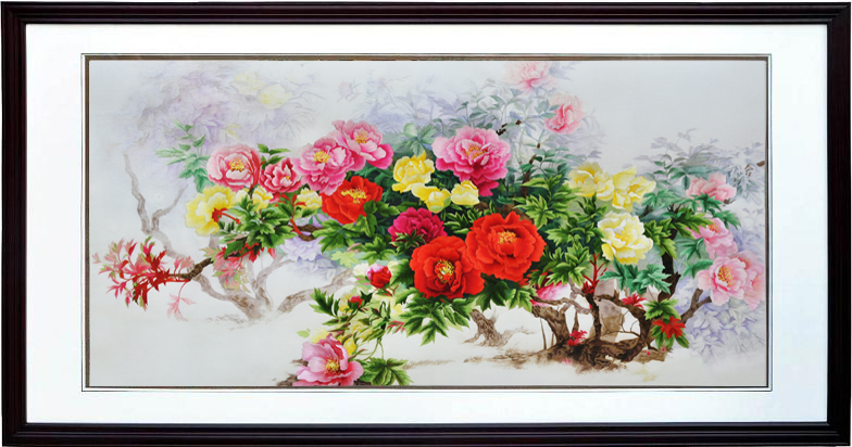 精品牡丹畫/中國特色禮品、傳統手工藝刺繡/婚慶禮品、喬遷禮品