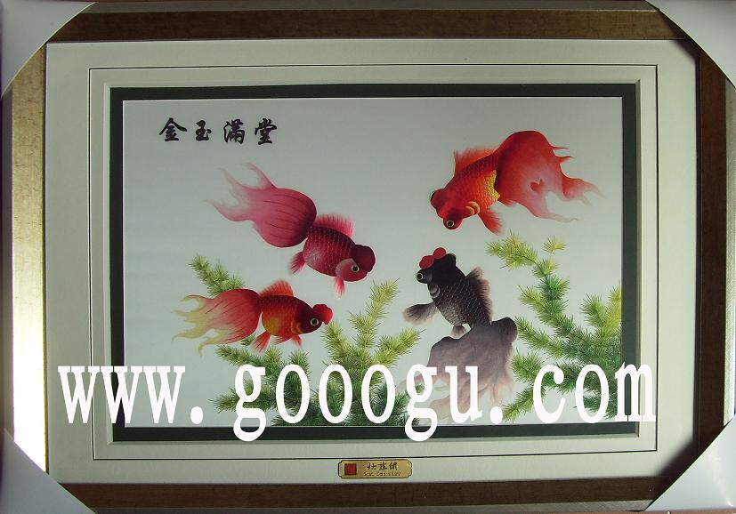 金玉滿堂蘇繡畫|魚類手工刺繡畫|江蘇蘇繡