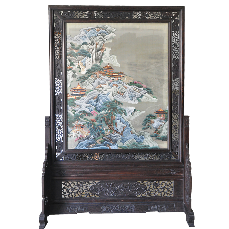中式古典居家玄關隔斷政府機關屏風開業慶典新年送禮刺繡品