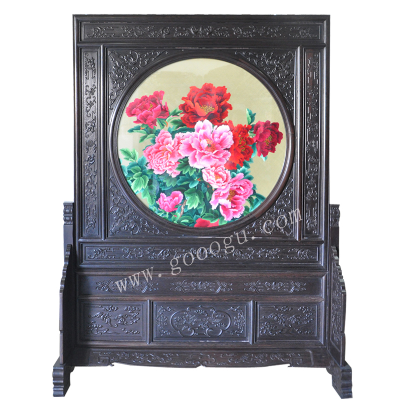 蘇繡隔斷 玄關牡丹屏風 手工雙面刺繡 國花傳統工藝品禮品