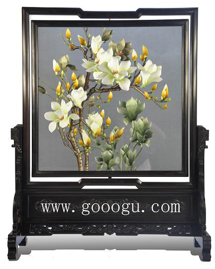 傳統(tǒng)蘇繡精品玉蘭花雙面繡擺件收藏白玉蘭刺繡臺(tái)屏