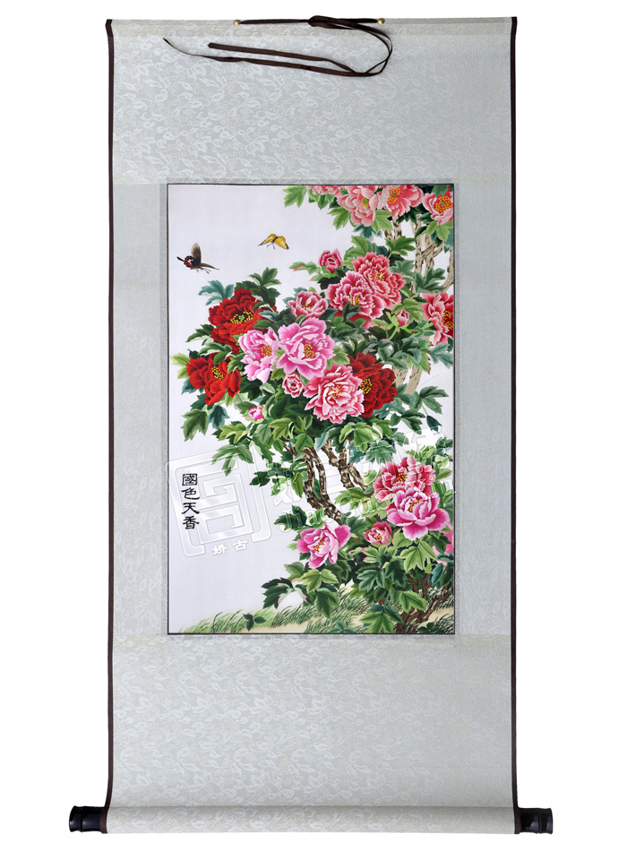 【嬌古蘇繡】蘇繡精品國花&蘇繡牡丹圖&軟裱方便攜帶&客廳裝飾畫