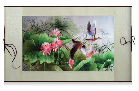 【嬌古蘇繡】蘇繡軟裱掛畫、雁弄荷花圖、裝飾精品畫/送領導