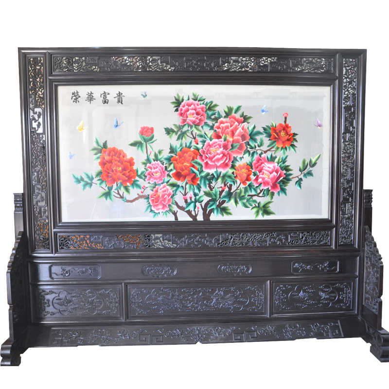 蘇繡屏風 純手工刺繡精品 牡丹富貴圖 開業周年禮品