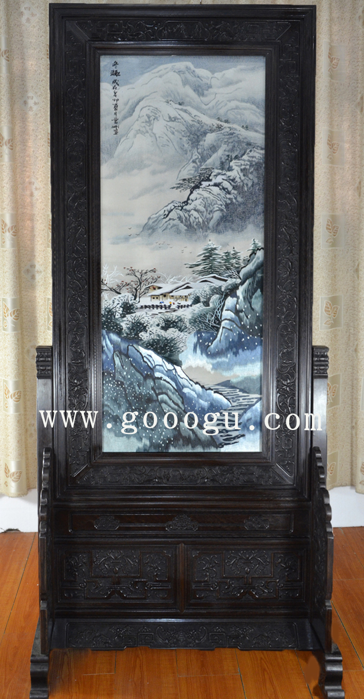 蘇繡山水玄關屏風 純手工刺繡 家用玄關 山水冬趣