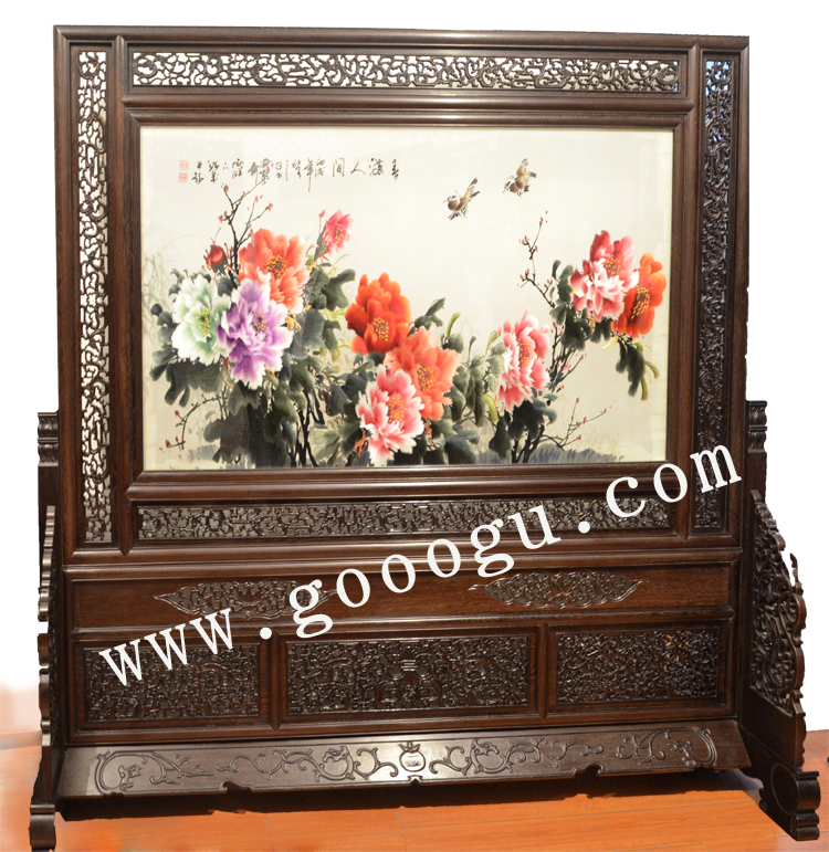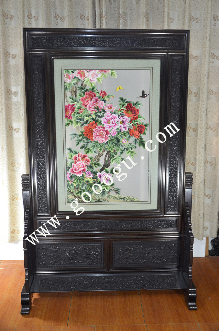 玄關家用屏風 雙面繡屏風 木質玄關 榮華富貴牡丹圖