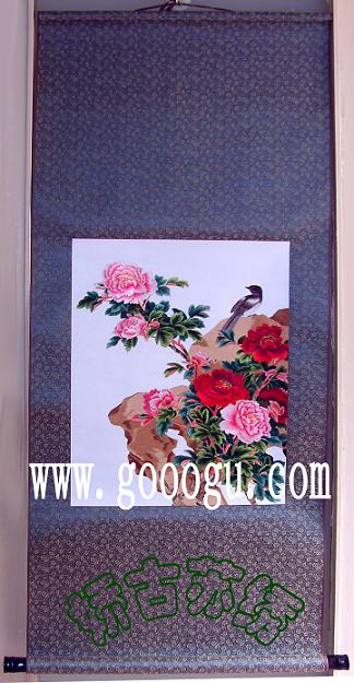 手工刺繡卷軸畫  絲綢刺繡畫  手工刺繡工藝畫