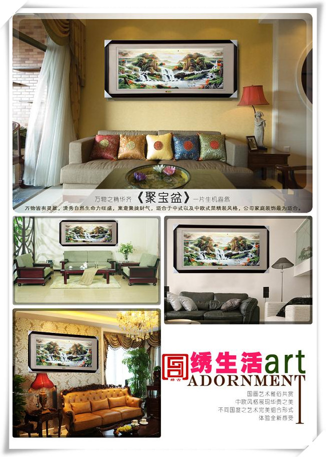 【蘇繡規格】:60*160(圖案尺寸) 90*200CM(外框尺寸) 【蘇繡工藝】:手工刺繡 【外框材質】:實木框拉丁木 【絲線材質】:蠶絲線 【蘇繡檔次】:6-8絲刺繡。 【嬌古蘇繡出廠價】:5200元(含運費) 【發貨方式】:由我司安排發往客人指定地點 【寓 意】:山水畫的代表著財源,流動的水如瀑布更是川流不息的好兆頭。;是表示靠山的意思,山水常青、背靠大山、水(財)源滾滾、平安長久。聚寶盆山水除了普通山水畫的寓意,更體現聚字。聚的是財,聚的是福,聚的是吉祥。兩邊源源不斷的流水表示有多方財源。匯聚成一湖面,整體看就是一個大元寶,寓意大富貴。松樹和仙鶴代表著財富得以長長久久。 【細節欣賞一】