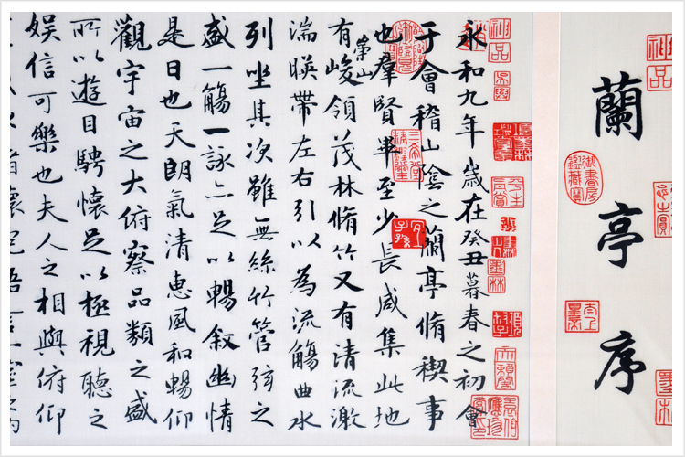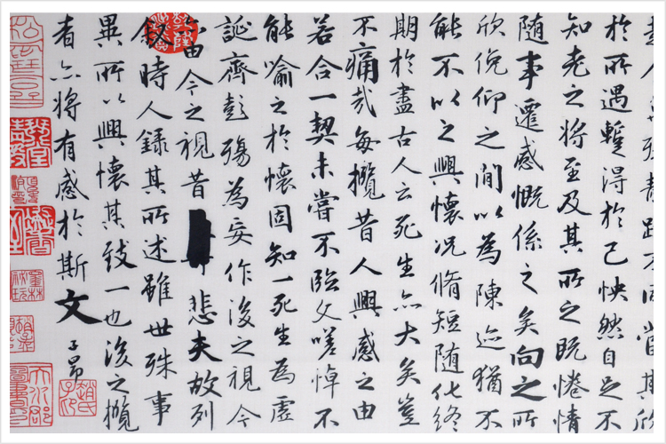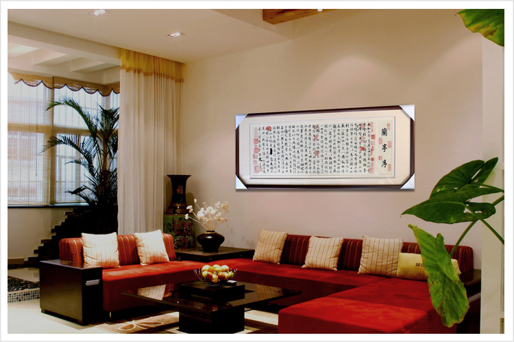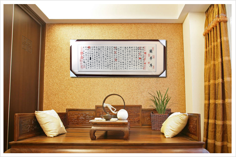 【品 牌】:嬌古 (作品代碼 D-1042) 【品 名】:蘭亭序裝飾畫(手工蘇繡) 【品 質】:2-4絲刺繡 (蘇繡小知識:1根蘇繡絲線可分為16絲,中檔刺繡皆為10絲所繡,中高檔刺繡皆為6-8絲,高檔刺繡皆為4-6絲,精品刺繡皆為1-4絲) 【尺 寸】:畫心尺寸44*117cm 整體尺寸60*147cm 【產品工藝】:手工刺繡+真絲底料 【絲線材質】:蠶絲線 【用 途】:家居裝飾及政府禮品、外賓禮品、生日禮物、賀壽禮品、領導升遷、出國禮品等等。 【出廠價格】:12000元 【作品介紹】:東晉穆帝(司馬聃)永和九年(公元353年)三月初三日,王羲之和當時名士孫綽、謝安和釋支遁等四十一人,為禊事活動,在蘭亭宴集。與會的人士都有詩作,事后把這些詩篇匯編成集,《蘭亭集序》就是王羲之為這個詩集所寫的序言。序,文體名,是對書籍和文章舉其綱要、論其大旨的一種文字,相當于引言。 《蘭亭集序》文字燦爛,字字珠璣,是一篇膾炙人口的優美散文,它打破成規,自辟徑蹊,不落窠臼,雋妙雅逸,不論繪景抒情,還是評史述志,都令人耳目一新。雖然前后心態矛盾,但總體看,還是積極向上的,特別是在當時談玄成風的東晉時代氣氛中,提出一死生為虛誕,齊彭殤為妄作,尤為可貴。《蘭亭集序[1]》的更大成就在于它的書法藝術。通篇氣息淡和空靈、瀟灑自然;用筆遒媚飄逸;手法既平和又奇崛,大小參差 ,既有精心安排藝術匠心,又沒有做作雕琢的痕跡,自然天成。其中,凡是相同的字, 寫法各不相同,各有變化,特別是字,達到了藝術上多樣與統一的效果。《蘭亭集序》是王羲之書法藝術的代表作,是中國書法藝術 史上的一座高峰,它滋養了一代又一代書法家。 在結構和章法上以情感為線索,敘中有情,以情說理。第一段在清麗的境界中,著重寫樂字,由樂而轉入沉思,引出第二段的痛字,在經過一番痛苦的思考后,不覺感到無限的悲哀,最后以一悲字作結。情感色彩迥乎不同,前后過渡卻妥帖自然。 細節圖
