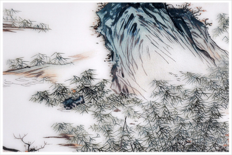 【品 牌】:嬌古 (作品代碼 D-1028) 【品 名】:南岸山水裝飾畫(手工蘇繡) 【品 質(zhì)】:1-2絲刺繡 (蘇繡小知識:1根蘇繡絲線可分為16絲,中檔刺繡皆為10絲所繡,中高檔刺繡皆為6-8絲,高檔刺繡皆為4-6絲,精品刺繡皆為1-4絲) 【尺 寸】:畫心尺寸50*100cm 整體尺寸75*130cm 【產(chǎn)品工藝】:手工刺繡 【絲線材質(zhì)】:蠶絲線 。 【用 途】:居家裝飾或送政府禮品、外賓禮品、生日禮物、賀壽禮品、領(lǐng)導(dǎo)升遷、出國禮品等等。 【出廠價(jià)格】:15000元 【細(xì)節(jié)圖】