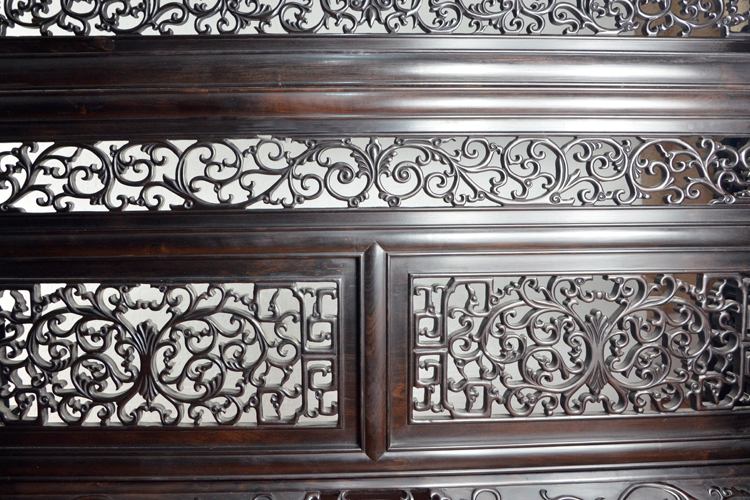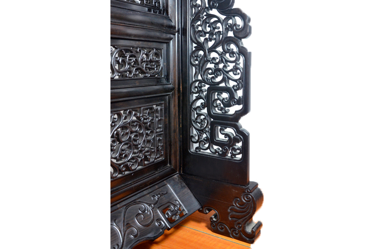 紫光檀木框架雕花精細、堪稱手工藝品中的佳作