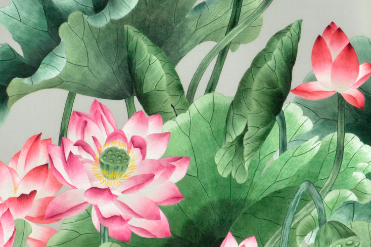 【產品名稱】:蘇繡玄關屏風---荷花(雙面繡)  (作品代碼:P-1069)