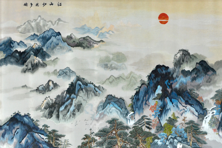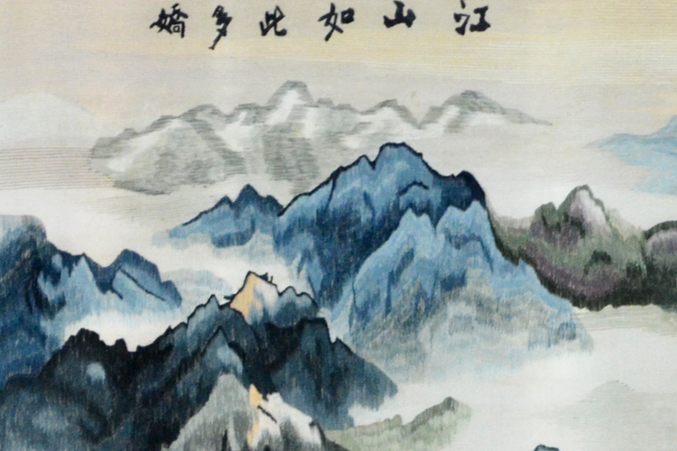 蘇繡山水屏風 江山如此多嬌 純手工刺繡 接待室專用