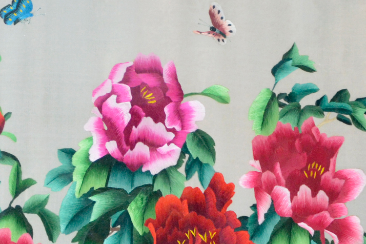【產品說明】:此款雙面繡屏風,是由蘇州工藝師耗時三個月精心手工刺繡而成,刺繡圖案以國花牡丹為題材繡工精細,顏色搭配均勻過渡自然,整體給人舒適,愜意之感,屏風的框架選用花梨木為料。是家用玄關或辦公室玄關的雅致作品!歡迎親臨嬌古蘇繡展示廳觀看實物!