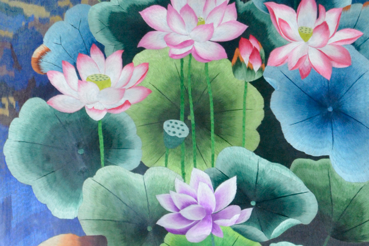 【產(chǎn)品名稱】:蘇繡荷花屏風(fēng)(雙面繡) (作品代碼:P-1202) 【產(chǎn)品規(guī)格】:圖案尺寸寬度60cm,高度125cm 外框整體尺寸寬100cm,高205cm 【產(chǎn)品工藝】:手工刺繡 【產(chǎn)品材質(zhì)】:真絲面料+雞翅木框+桑蠶絲線+玻璃 【產(chǎn)品包裝】:木箱包裝,用海綿包扎,確保運輸安全 【出廠價】:18000元 【產(chǎn)品運輸】:我司負(fù)責(zé)發(fā)往客戶指定地點,蘇州附近城市可送貨上門! 【產(chǎn)品說明】:此款荷花雙面繡屏風(fēng),是由蘇州工藝師耗時數(shù)個月精心手工刺繡而成,刺繡圖案以荷花為題材繡工精細(xì),顏色搭配均勻過渡自然,屏風(fēng)的框架選用進(jìn)口的雞翅木為料,是蘇繡屏風(fēng)中的經(jīng)典作品。是企事業(yè)大堂或大廳的重要裝飾品之一!歡迎親臨嬌古蘇繡展示廳觀看實物! 【作品欣賞】 .jpg)