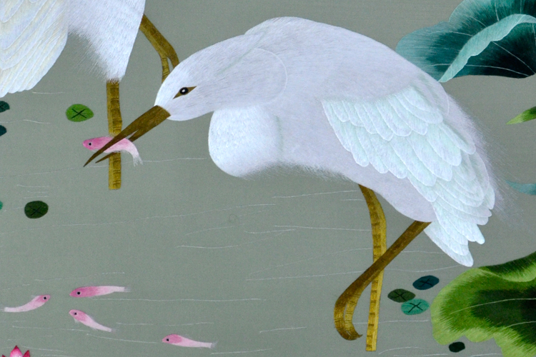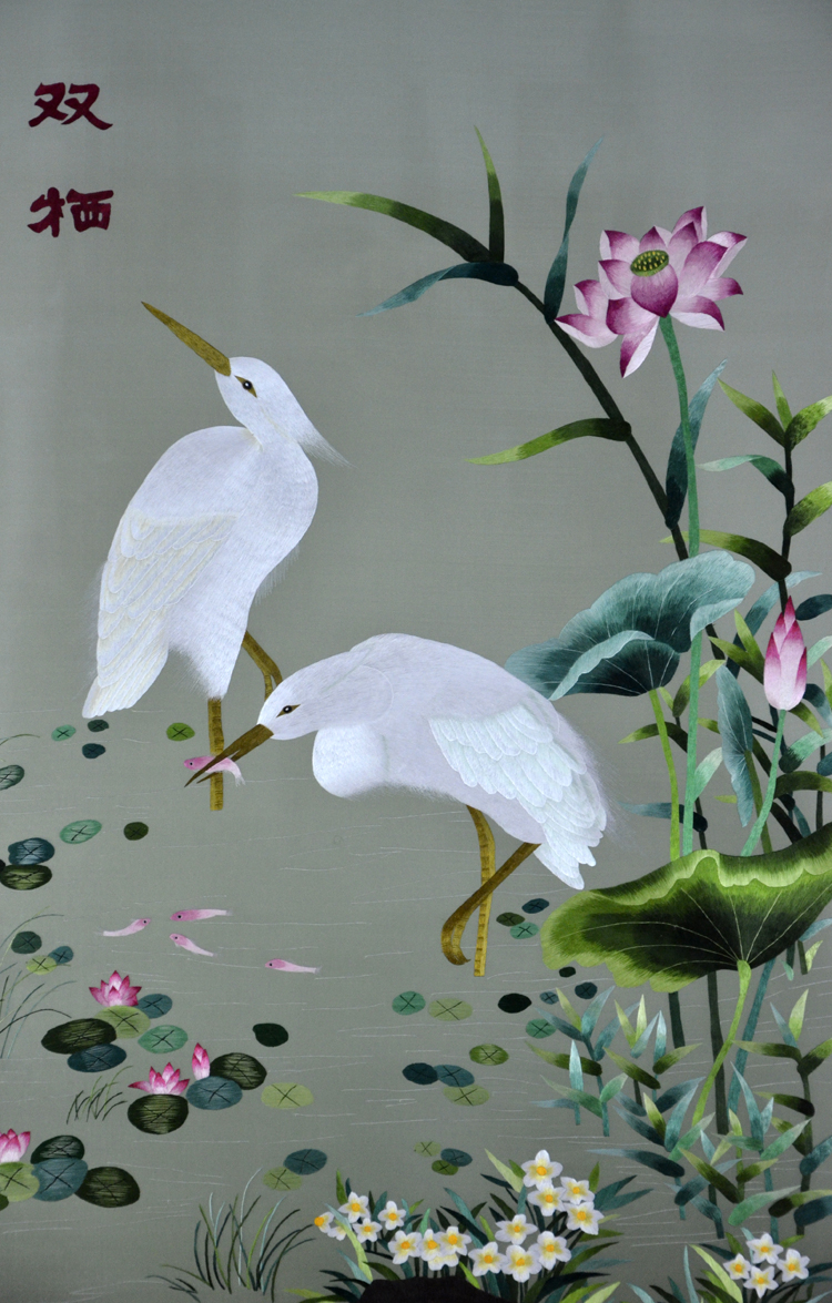 【產(chǎn)品名稱】:白鷺雙棲玄關(guān)(雙面繡) (作品代碼:P-1211) 【產(chǎn)品規(guī)格】:圖案尺寸寬度70cm,高度110cm 外框整體尺寸寬86cm,高168cm 【產(chǎn)品工藝】:手工刺繡 【產(chǎn)品材質(zhì)】:真絲面料+雞翅木框+桑蠶絲線+玻璃 【產(chǎn)品包裝】:木箱包裝,用海綿包扎,確保運(yùn)輸安全 【出廠價(jià)】:12000元 【產(chǎn)品運(yùn)輸】:我司負(fù)責(zé)發(fā)往客戶指定地點(diǎn),蘇州附近城市可送貨上門! 【產(chǎn)品說明】:此款白鷺雙棲玄關(guān)雙面繡,是由蘇州工藝師耗時(shí)兩個(gè)月精心手工刺繡而成,顏色搭配均勻過渡自然,屏風(fēng)的框架選用雞翅木為料,此款蘇繡屏風(fēng)適合居家和辦公裝飾!歡迎親臨嬌古蘇繡展示廳觀看實(shí)物! 【作品欣賞】 .jpg)