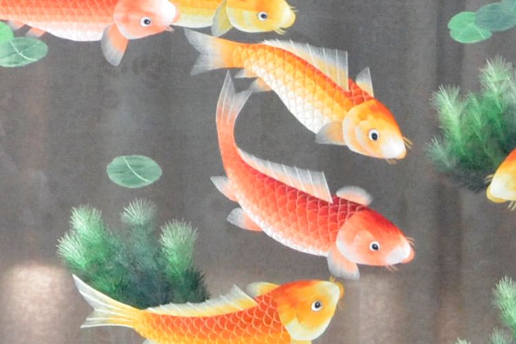 【產(chǎn)品名稱】:年年有余屏風(雙面繡) (作品代碼:P-1212) 【產(chǎn)品規(guī)格】:圖案尺寸寬度140cm,高度85cm 外框整體尺寸寬188cm,高186cm 【產(chǎn)品工藝】:手工刺繡 【產(chǎn)品材質(zhì)】:真絲面料+雞翅木框+桑蠶絲線+玻璃 【產(chǎn)品包裝】:木箱包裝,用海綿包扎,確保運輸安全 【出廠價】:18000元 【產(chǎn)品運輸】:我司負責發(fā)往客戶指定地點,蘇州附近城市可送貨上門! 【產(chǎn)品說明】:此款年年有余雙面繡屏風,是由蘇州工藝師耗時兩個月精心手工刺繡而成,刺繡圖案以水草荷花魚為題材繡工精細,給人清新愜意之感,顏色搭配均勻過渡自然,屏風的框架選用雞翅木為料,此款蘇繡屏風中適合居家和辦公的裝飾!歡迎親臨嬌古蘇繡展示廳觀看實物! 【作品欣賞】 .jpg)