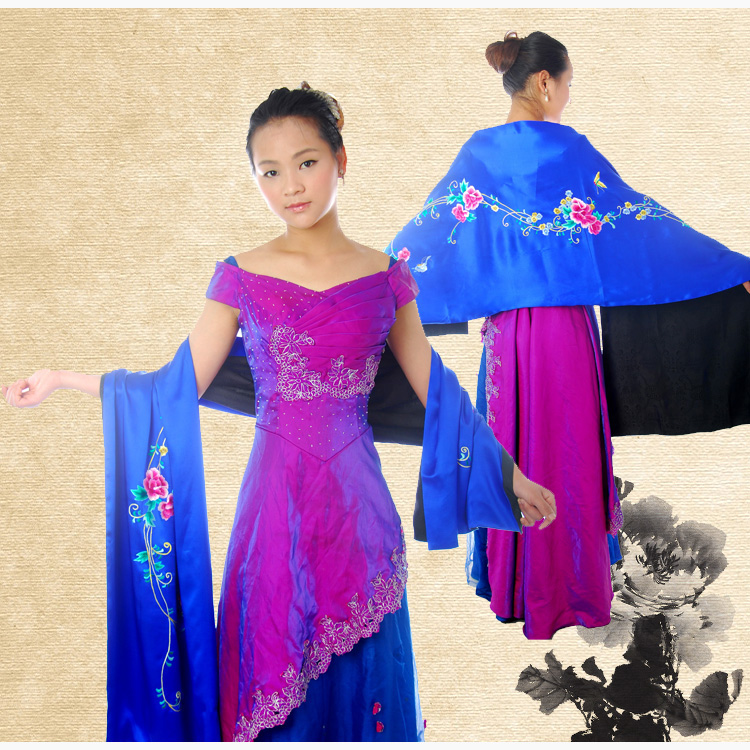 【用 途】:此款精品手繡披肩融合了多種手工縫制方法與刺繡工藝,配合晚禮服與旗袍等服裝在大型的宴會等場合都會盡顯女人的氣質與高貴古典。