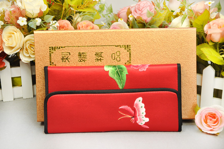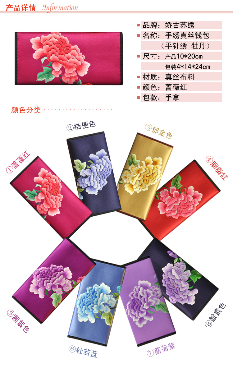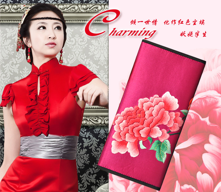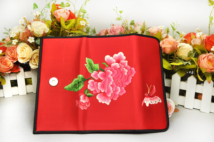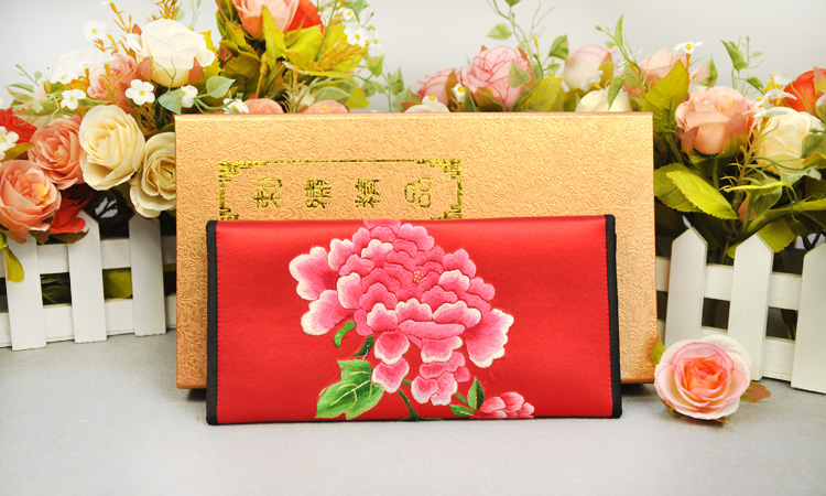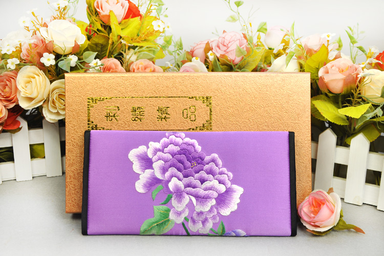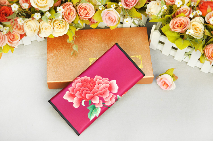 平繡牡丹 純手工刺繡 蘇繡錢包 高檔特色禮品 送領(lǐng)導(dǎo)送外國(guó)人禮品