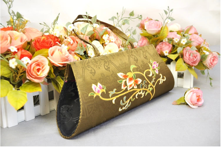蘇州特產 民族風手工包包 古典絲綢手拎包 精美刺繡晚禮服包包