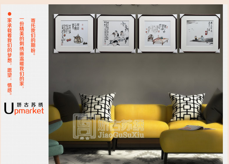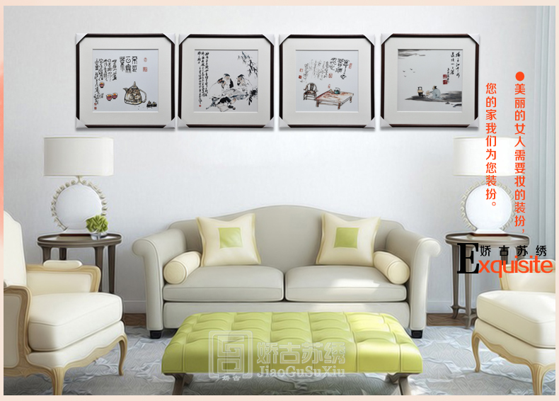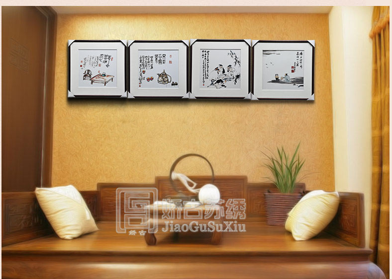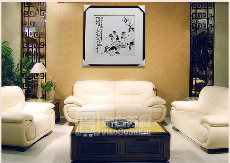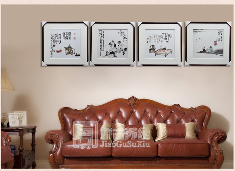 【品 牌】:嬌古 (作品代碼 D-1068)【品 名】:中國元素裝飾畫(手工蘇繡)【品 質】:4-6絲刺繡(蘇繡小知識:1根蘇繡絲線可分為16絲,中檔刺繡皆為10絲所繡,中高檔刺繡皆為6-8絲,高檔刺繡皆為4-6絲,精品刺繡皆為1-4絲)【尺 寸】:畫心尺寸50*50cm 整體尺寸75*75cm【產品工藝】:手工刺繡+真絲底料【絲線材質】:蠶絲線 【用 途】:政府禮品、個人收藏、外賓禮品、生日禮物、賀壽禮品、領導升遷、出國禮品等等。【出廠價格】:3000元/幅