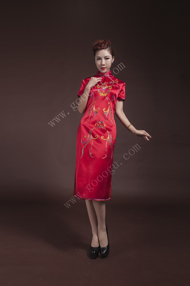 嬌古絲綢純手工刺繡旗袍禮服 高級定制繡花服裝